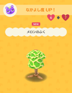 スパークのなかよし度が7になって「メロンのふく」をもらったよ。